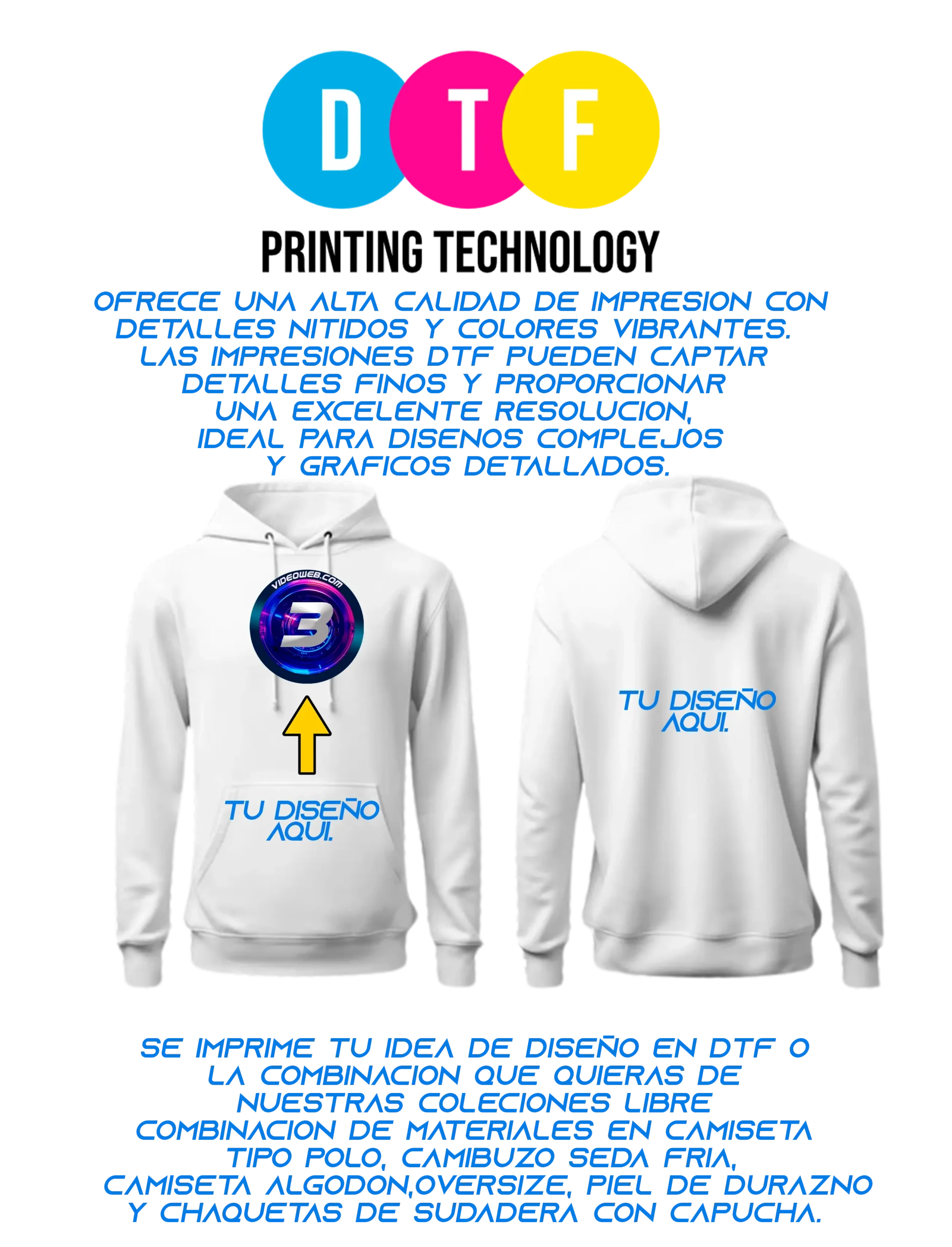Dale play a tus diseños , dale play a tu marca , imprimimos enDTF cualquier idea o logo que tengas.